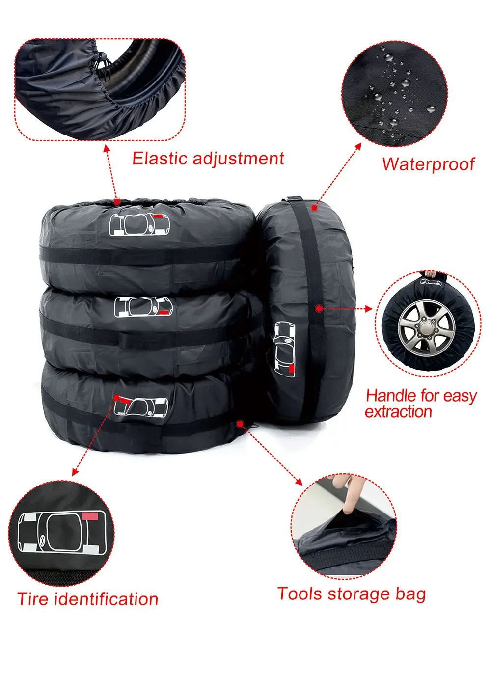 • Einfache Lagerung:Diese Reifen abdeckungen sind als 4er-Set verpackt und leicht zu lagern und können bei Bedarf schnell abgerufen werden.
